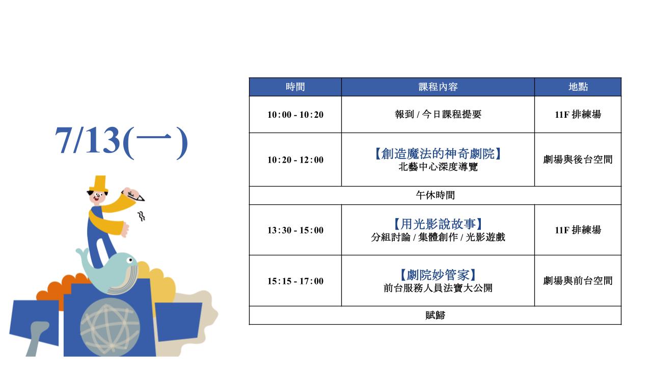 培訓內容:建築空間探索、劇場前後台直擊、節目欣賞、口語及肢體表達等培訓課程。