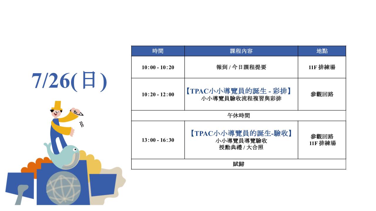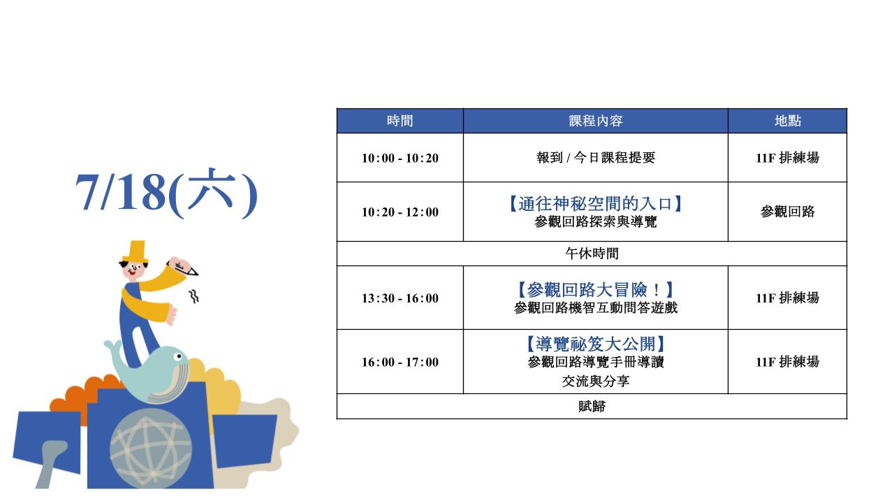 課程時間:2026年7月11日(六)至2026年8月16日(日)(含培訓及導覽服務)。