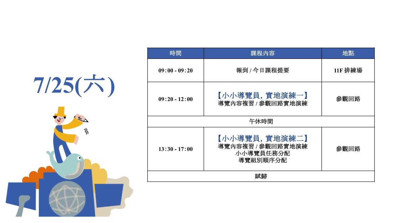 (8月份須依排班確實參與導覽服務,並於8/16(日)以前完成2場導覽)